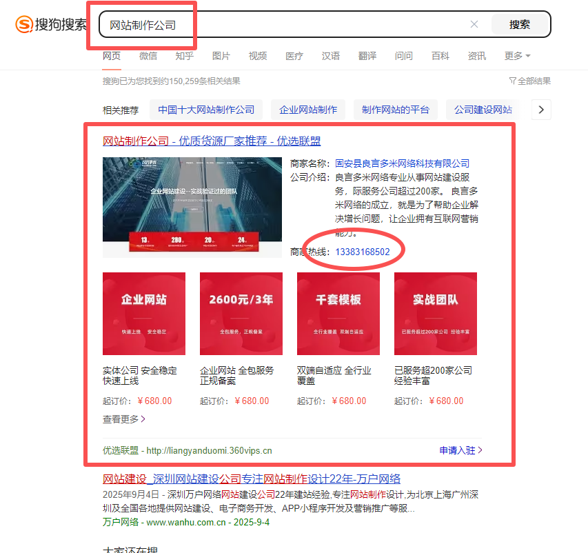 搜狗優(yōu)選聯(lián)盟建議做,但它只是“流量入口的錦上添花”,不是核心。。如果一年只挑3-5個核心業(yè)務+地區(qū)詞來做(比如“北京網站建設"企業(yè)網站建設"),我覺得投入是劃算的。